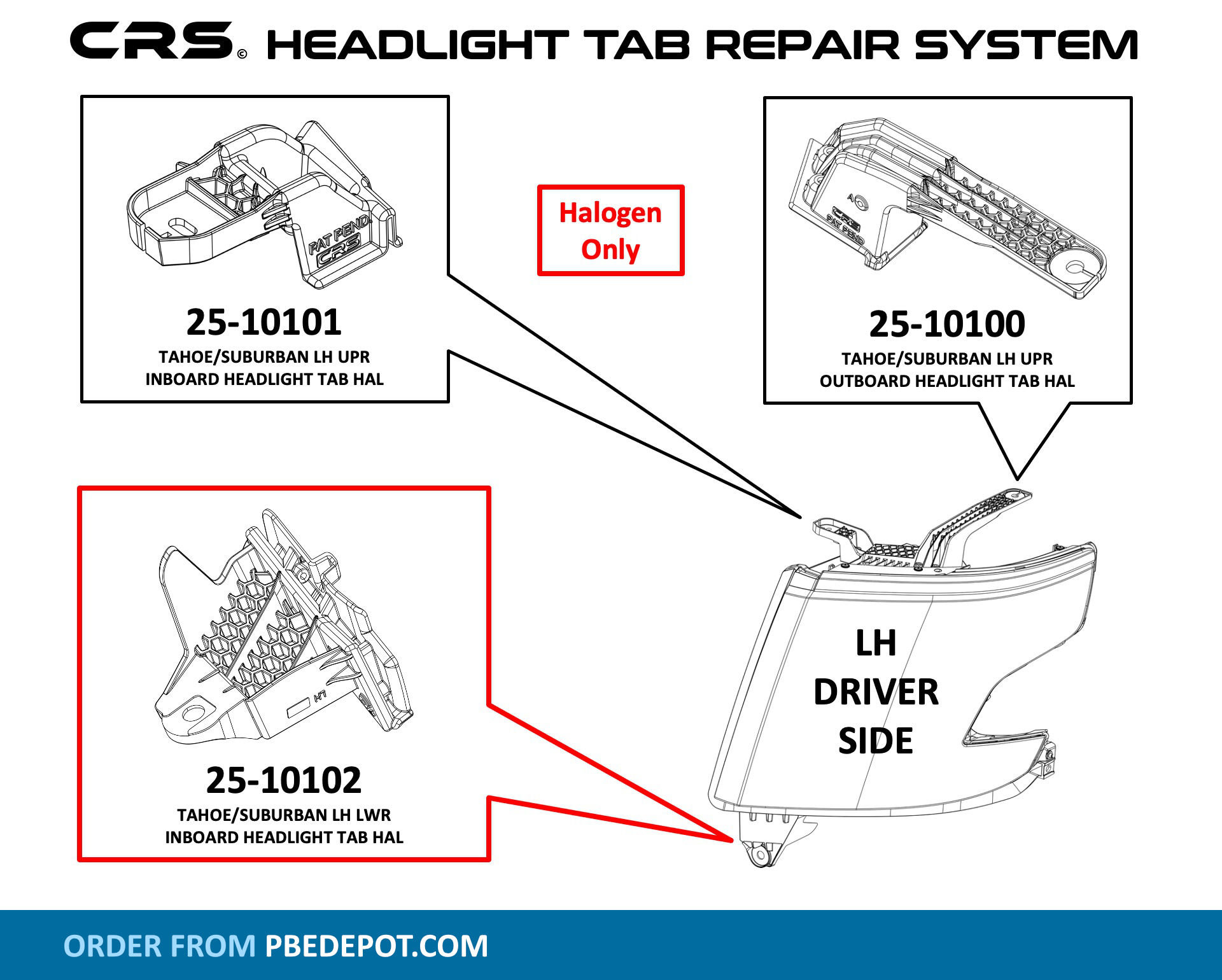 PBE Depot is your exclusive source for the CRS Headlight Tab Replacement System